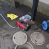 専用の加圧式ローポンプ機を慎重に操作して排水管内部の閉塞を解消し、溜まっていた汚水をスムーズに排出させる処置を施しました。